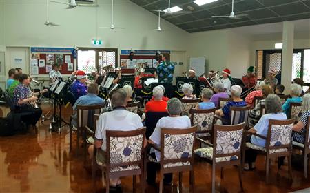 Ross River Rotary Club joined the Thuringowa Brass Band at St James Retirment Village and RSL villas for a festive afternoon of Christmas Carols plus the distribution of bags of lollies!