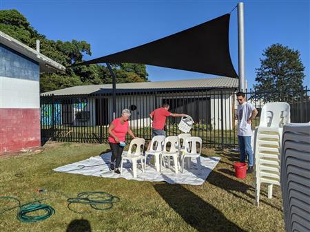 Well what a great turn up of members and volunteers we had, special thanks goes to Julie for bringing along her family who worked as a team on cleaning chairs. The clean up of tables and chairs went well with another group sorting and length tagging all the bunting so we aren’t guessing how long a roll is anymore. Also unrolling and untangling the rope flagging. Charlie for going to Bunning and buying 2 more hose reels to roll flagging onto. We now have enough of both for the Mega Markets. It ended up being quite warm so Shannon went off and purchased cold water and very nice coffee for those of us who needed a boost. Rachael for organizing the morning snacks of Subway which was very enjoyable for those of us who didn’t have other commitments. The shed was locked and I left at 11AM. We had 15 adults and 3 children who seemed to have a great time helping.